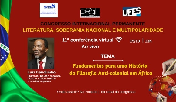 4. Em 08 de novembro de 2025, às 13h [17h em Angola]: Conferência do Escritor e Profº. Drº. Luis Kandjimbo da Universidade Agostinho Neto (UAN - Angola): "Fundamentos para uma História da Filosofia Anti-colonial em África (PALOP): Da autodeterminação dos povos à obrigação internacional de Portugal para a descolonização".