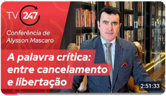 1. Em 13 de agosto de 2025, às 20h: Conferência do Jurista e Profº. Drº. Álysson Leandro Mascaro da Universidade do Estado de São Paulo (USP): "A Palavra Crítica: Entre o cancelamento e a libertação".